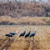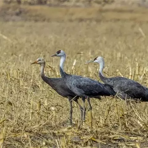 所幸的是,蓝鹤的厄运还不至于差到“绝望”的境地。如今它们的状况还是有好有坏,参差不齐的。境况最差的是那些原本分布在辽阔的草原生物群落区的蓝鹤。那里曾经是它们可靠的“根据地”。可如今在这类地区,90%的蓝鹤已经在过去的20年中逐渐消失了。只剩下大约9000只还稀稀拉拉地“坚守”在这里。起先,人们对这一严重情况并无觉察,等到发现时已经“悔之晚矣”。导致这悲剧发生的主要原因是“中毒死亡”。