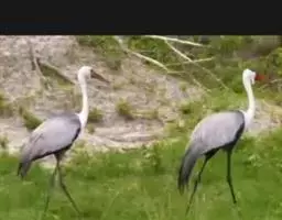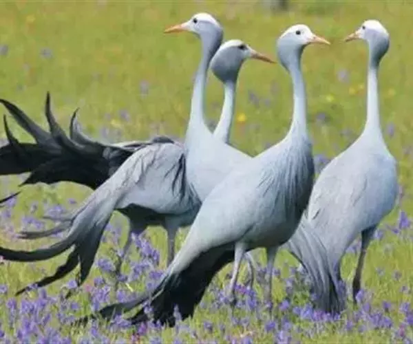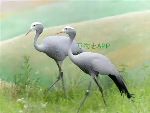 蓝鹤又名蓝蓑羽鹤。它们通常在地上生活,高约100-120厘米,重4-6.2千克。它们身体大部分被羽呈淡蓝灰色,有白冠,喙呈粉红色,双翼羽毛呈深灰色监很长。
