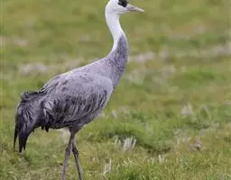 蓝鹤(Anthropoide sparadiseus)是非洲所拥有的6种鹤之一。它高雅而美丽的外貌给人留下深刻的印象。它有多层柔美而悠长的羽毛,由此构成特别长的“内翅”(三级飞翔),乍一看,会使人以为它有很长的尾翼,其实不然。大多数鹤类在头部和脸部都会有艳丽的装饰,最典型的就是头部有红色羽毛或者红色的裸皮,而全身羽毛球则纯黑或纯灰、纯白,偶尔会间以明显的条纹,或配有精美的鸟冠。可是在这方面,蓝鹤却非常朴实无华。