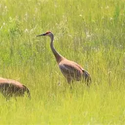 沙丘鹤别名棕鹤、加拿大鹤,是鹤形目鹤科鹤属大型涉禽。成鸟两性相似,雌鹤略小,…