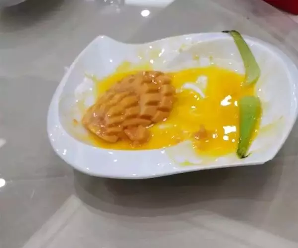 4、将熬好的糖汁淋在切好的山药上面,放入碗内用高压锅压15分钟。