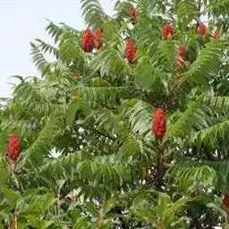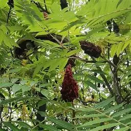 火炬树是漆树科盐麸木属落叶灌木或小乔木;株高,树形不整齐;小枝粗壮,红褐色,密生绒毛;叶轴无翅,…