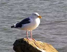 灰背鸥大型水鸟,体长62~69厘米。嘴直,黄色,下嘴先端有红色斑。脚粉红色,头、颈和下体白色,背、…