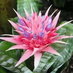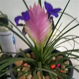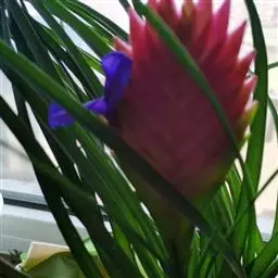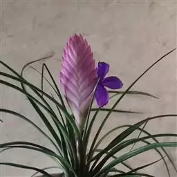 紫花凤梨,是凤梨科铁兰属的多年生草本植物。株高不及30厘米;叶片拱状线形,叶丛族生于短缩茎上,…
