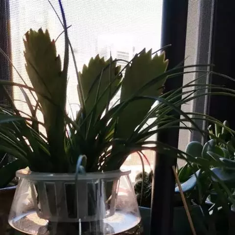 美叶光萼荷是凤梨科光萼荷属的多年生附生常绿草本植物。叶基生,莲座状叶丛基部围成筒状,…