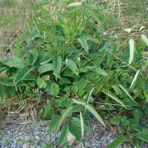 叶为羽状复叶,有小叶4-6对,叶柄有棱,无毛,小叶有柄,椭圆形或卵状椭圆形,基部心形至深心形,稀微心形,顶端圆形,边缘有粗大缺刻状急尖锯齿,上面暗绿色,下面绿色,无毛,茎生叶2-4,与基生叶相似,惟向上小叶对数逐渐减少;基生叶托叶膜质,黄褐色,无毛,茎生叶托叶草质,绿色,卵形,边缘有缺刻状锯齿。