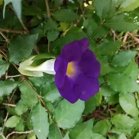 爵床科山牵牛属多年生常绿灌木,植株高2-3米,分枝多,枝条较柔软,幼茎四棱形,绿色至深褐色。蓝吊钟…