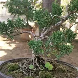 铺地柏是一种矮小的柏科圆柏属灌木,原生于日本南部。系柏科常绿匍匐小灌木,高达75厘米,冠幅逾2米。枝干贴近地面伸展,褐色,小枝密生。枝梢及小枝向上斜展。叶均为刺形叶,先端尖锐,3叶交叉互轮生,条状披针形,先端渐尖成角质锐尖头,长6-8毫米,上面凹,表面有2条白色气孔带,下面基部有二个白粉气孔,气孔带常在上部汇合,绿色中脉仅下部明显,不达叶之先端,下面凸起,蓝绿色,沿中脉有细纵槽。叶基下延生长;球果近球形,被白粉,成熟时黑色,径8-9毫米,有2-3粒种子;种子长约4毫米,有棱脊。匍匐枝悬垂倒挂,古雅别致,是制作悬崖式盆景的良好材料。