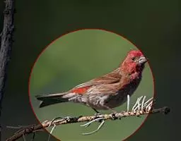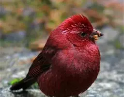 藏朱雀:全长约17-18厘米。雄鸟头部深红色具光辉,喉部暗红色具白色点斑;背部灰白色,各羽具玫瑰红…