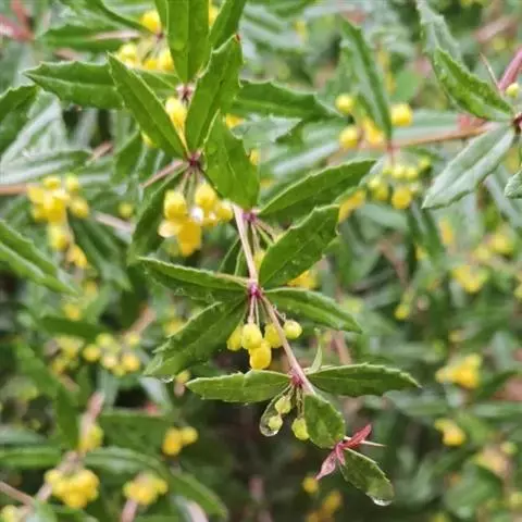 大叶小檗是小檗科小檗属植物,常绿灌木,高可达2米。老枝具棱槽,叶革质,椭圆状倒披针形,基部楔形,上…