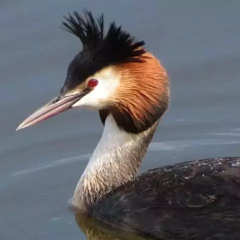 凤头鸊鷉:体长为50厘米以上,体重为0.5-1千克。前额和头顶部黑褐色,枕部两侧的羽毛往后延伸,…