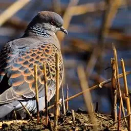 山斑鸠,是鸽形目鸽鸠科斑鸠属鸟类,又名金背斑鸠、棕背斑鸠、山鸠、金背鸠、麒麟斑、麒麟鸠、东方斑鸠、绿斑鸠、山鸽子。山斑鸠颈侧具明显黑白色条纹的块状斑,上体深褐色、具扇贝状斑纹,羽缘棕色,尾羽近黑色,下体多偏粉色。虹膜黄色,喙灰色,脚粉色。山斑鸠是留鸟,在中国常见且分布广泛。此外,还分布于不丹、尼泊尔、巴基斯坦、印度、日本等国。栖息于针阔混交林、季风常绿阔叶林、果园及农耕区,多成对活动于开阔农耕区、村舍、寺院周围及防火林带。取食于地面,主要觅食植物种子、果实、嫩芽等,也吃昆虫。山斑鸠飞翔时鼓翼快速,叫声为反复而低沉的“咕咕咕”声。繁殖期在4-7月,营巢于林中树上,通常一年繁殖2窝,窝卵数2枚,由雌雄亲鸟轮流孵卵,孵化期18~19天。山斑鸠的肉、卵可食,肉入药可益气明目、强筋壮骨,治久病气虚、衰弱无力、两目昏暗等病症。山斑鸠啄食杂草种子,对农田清除杂草有益;但有时也刨食农作物及树的种子。山斑鸠