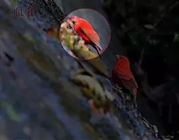 • 长尾朱雀:体长18厘米,体重16-26克。雄鸟额、颏和眼后为暗红色,…