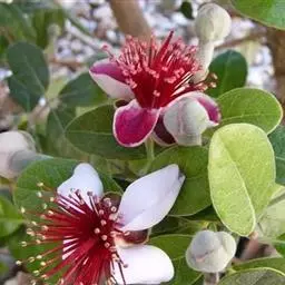 菲油果/斐济果(Feijoa sellowiana Berg)属桃金娘科菲油果属常绿灌木或小乔木,又名费约果、凤榴、肥吉果、菠萝番石榴。 原产地在中南美洲哥伦比亚、乌拉圭和阿根廷北部,盛产于新西兰。果实外皮深绿色,内部类似芭乐,富含维生素C。