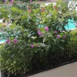 绿篱 花坛一般是应用各种不同色彩的草本花卉相配植,以花卉的群体平面效果来体现精美的图案纹样或盛花时艳丽色彩的一种园林设计形式。花坛花卉多采用草本植物,形成的景观具有临时性,需要根据不同的季节和花卉进行更替,如果选用萼距花种植在花坛中,不仅植株低矮、长势整齐、花期集中、株型紧凑、花色艳丽,枝叶繁茂,而且只要管理得当,可以达到一次种植多年观赏的效果,还可降低成本,是组建花篱的优良材料。 片植