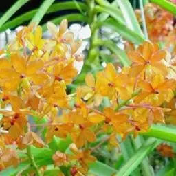 短距槽舌兰 Z. H. Tsi):茎很短,长1-2厘米,具数枚密生的叶。叶肉质或厚革质,二列,斜立…