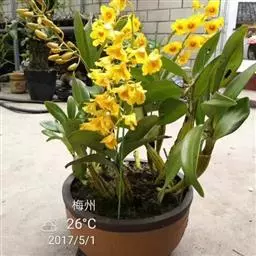 美花石斛是兰科石斛属多年生草本。茎柔弱,斜立或下垂,呈细圆柱形,有时分枝;叶互生于茎上,…