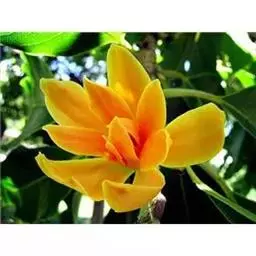 黄缅桂是木兰科、含笑属植物。常绿乔木,高达10余米;芽、嫩枝、嫩叶和叶柄均被淡黄色的平伏柔毛。…