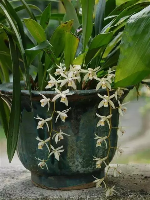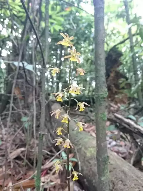 美花石斛是兰科石斛属多年生草本。茎柔弱,斜立或下垂,呈细圆柱形,有时分枝;叶互生于茎上,…