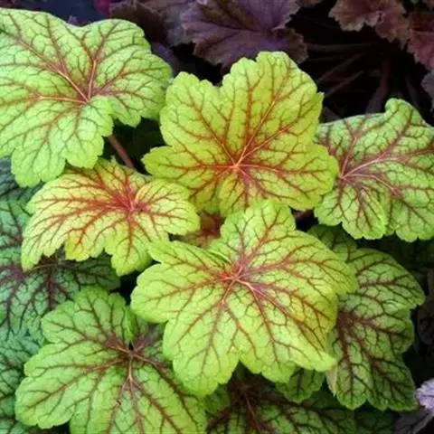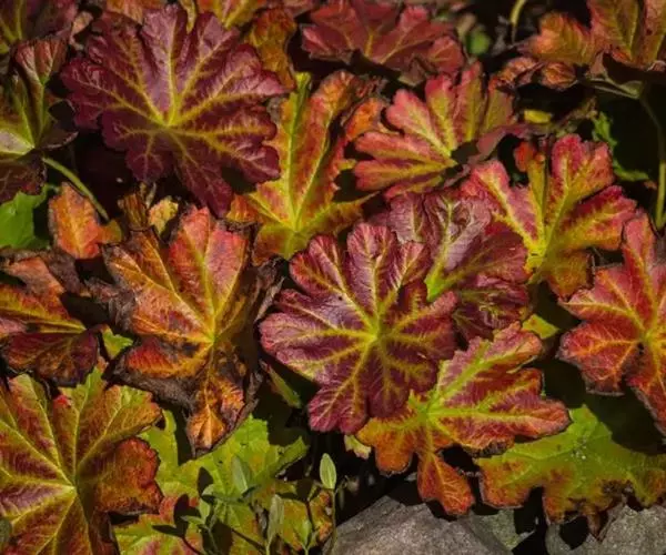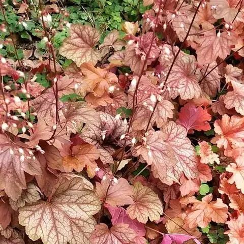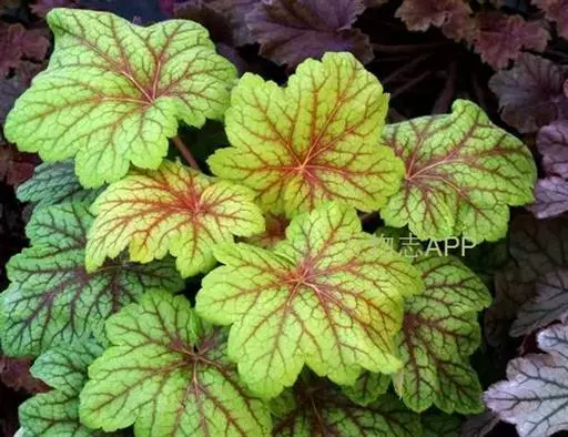 矾根最出众的地方还是它叶子的色彩,有的品种叶片背面的色彩也相当艳丽。另外,不同的季节、环境和温度下叶片的颜色还会有丰富的变化。