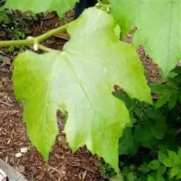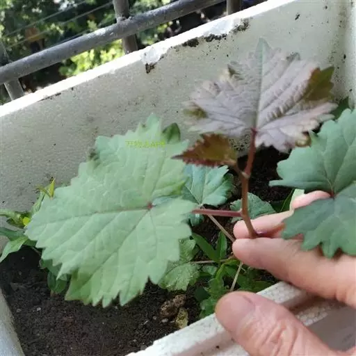叶卵圆形,显著3-5浅裂或中裂,长7-18厘米,宽6-16厘米,中裂片顶端急尖,裂片常靠合,基部常缢缩,裂缺狭窄,间或宽阔,基部深心形,基缺凹成圆形,两侧常靠合,边缘有22-27个锯齿,齿深而粗大,不整齐,齿端急尖,上面绿色,下面浅绿色,无毛或被疏柔毛;基生脉5出,中脉有侧脉4-5对,网脉不明显突出;叶柄长4-9厘米,几无毛;托叶早落。