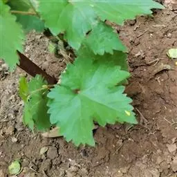 ⑷嫁接苗的田间管理:绿技嫁接后,及时灌水,做好砧木除萌和病害防治工作。嫁接后1周内保持土壤水分充足,地表面潮湿;及时、反复多次除掉砧木上的萌孽,集中营养,促进接芽萌发和生长。接芽抽生的新梢长到25-30厘米时,要插根竹竿或树条或拉细铁丝及时引绑,随着新梢的延长而不断地引绑,以防着地感病和折断。每株小苗只留l条新梢,新梢叶腋内发出的副梢随时留1片叶子摘心。生长后期(8月末到9月中旬)在新梢顶部摘心,促进枝条加粗和成熟。在6-7月份追施氮肥尿素或二铵各1次,每次每亩用量15千克,追后灌水;8月份追施磷、钾肥,叶片喷施0.3%的磷酸二氢钾或根施其他磷钾肥,每亩15-20千克。生长季节要经常(3-5次)除草和灌水,保持土壤疏松。苗木要引绑直立,使通风透光良好,以利苗木健壮生长,提高质量。病虫害防治应以预防为主。在嫁接前后,5月上旬开始,每隔10-15天喷1:0.5:200倍的波尔多液防病。一旦发生病虫害,可按病虫种类选择用药并及时喷洒消灭,使小苗健康生长。一般到10月1日前后准备出圃。首先作好苗木的品种、数量调查,拴好标牌,防止混杂。起苗前,撤掉插棍或铁丝,将混杂的苗木先挖出,而后在苗的基部往上或接口上留4-6个芽眼剪断,将剪下的枝条,分品种捆好放在阴凉处,去叶埋土保存。然后苗田灌水,使土壤松软,以利起苗。一般根系要求长25-30厘米,根干不劈裂,新梢粗0.7厘米以上的为合格苗。