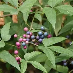 浆果球形,径约6mm,熟时白色或蓝色,有针孔状凹点。花期5-6月,果期9-10月。