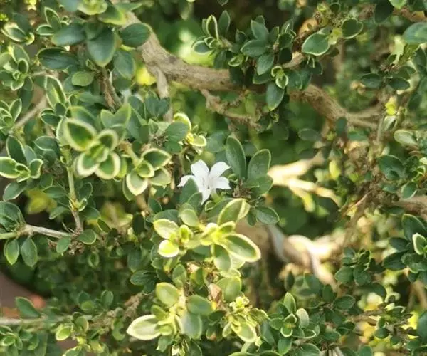常绿小乔木,老枝灰色,小枝圆且细长,叶对生,叶厚纸质或薄革质,椭圆形或卵形,叶缘镶有乳白色边环。花序顶生或腋生,花期4-6月。核果近球形,果期9-10月。全株极细密,极耐修剪,灌木球紧凑,容易成型。与其它彩叶植物配植,彩化效果突出。