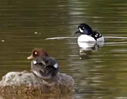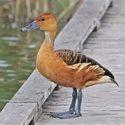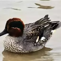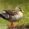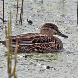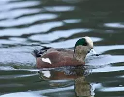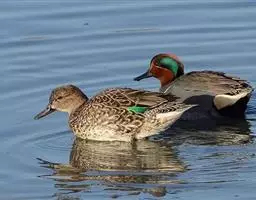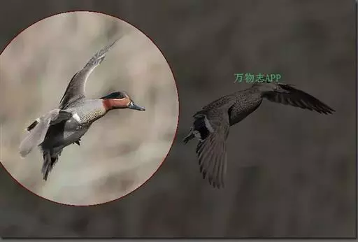 绿翅鸭:体小,翼镜金属绿色,头部深栗,两侧有绿色带斑。