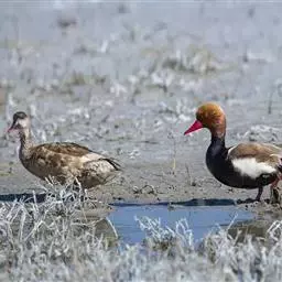 赤嘴潜鸭俗称大红头,是大型鸭类,个体比绿头鸭小,体长45-55厘米,体重1千克左右。雄鸟头浓栗色,…