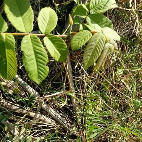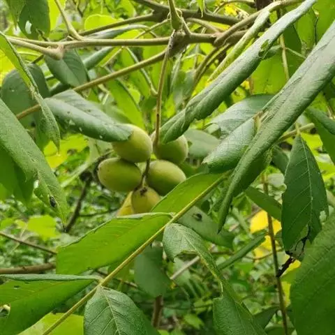 胡桃楸是胡桃科、胡桃属的乔木植物。株高可达20余米;茎皮灰色;叶椭圆形、长椭圆形、卵状椭圆形或长椭圆状披针形,具细锯齿,上面初疏被短柔毛,后仅中脉被毛,下面被平伏柔毛及星状毛;雄葇荑花序轴被短柔毛,雌穗状花序轴被茸毛;果序俯垂,果球形、卵圆形或椭圆状卵圆形,顶端尖,密被腺毛,果核棱间具不规则皱曲及凹穴,顶端具尖头;种仁较小;花期5月;果期8-9月。胡桃楸分布于中国黑龙江、吉林、辽宁、内蒙古、山西、河南、河北等省地,朝鲜、俄罗斯、日本等国家亦有分布。其喜温暖凉爽的生存环境,适宜在土层深厚、疏松肥沃、排水良好的黑垆土上栽培。一般繁殖方式为种子繁殖。胡桃楸具有止痛、敛肺定喘、温肾润肠、清热解毒等功效,可用于治疗胃痛、神经性皮炎、体质虚弱、肺虚咳嗽、肾虚腰痛、细菌性痢疾等症状。因其木材反张力小、不挠不裂,可作枪托、车轮、建筑等重要材料。