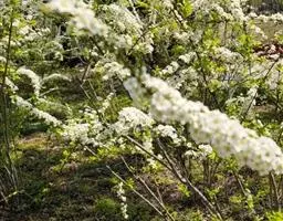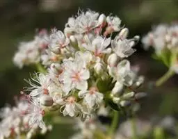 伞房状聚伞花序,顶生,苞片长圆形,薄膜质,花梗长4-5毫米,顶部具关节,无毛,比苞片长;花被5深裂,稀4深裂,白色或淡黄色,被片宽倒卵形,长4-5毫米,不相等;雄蕊6-8, 花药紫色;花柱3, 柱头头状。