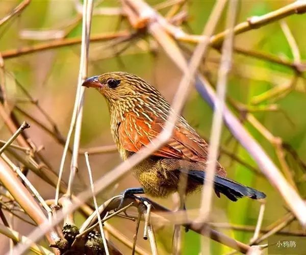 小鸦鹃栖息于低山丘陵和开阔鲍山脚平原地带的灌丛、草丛、果园和次生林中。