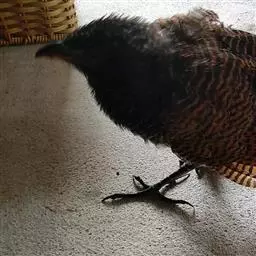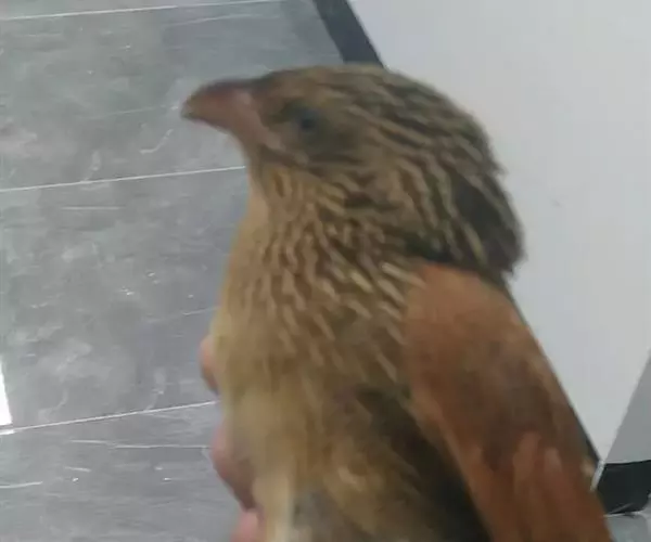 小鸦鹃幼鸟头、颈和上背暗褐色,具白色羽干和棕色羽缘;腰至尾上覆羽为棕色和黑色横斑相间状,尾淡黑色,具棕色端斑。中央尾羽具棕白色横斑和棕色端斑。下体淡棕白色,羽干白色,胸和两胁暗色,两胁具暗褐色横斑。两翅栗色,翼下覆羽淡栗色,且杂有暗色细纹。