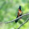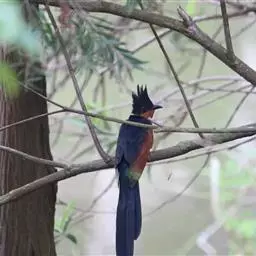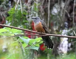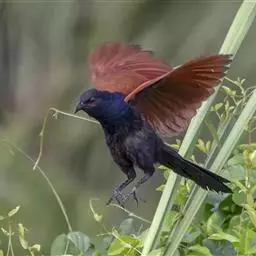 红翅凤头鹃:体长约38厘米,顶冠及凤头黑色,具显眼的直立凤头,背及尾黑色而带蓝色光泽,翅栗红色,…