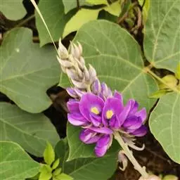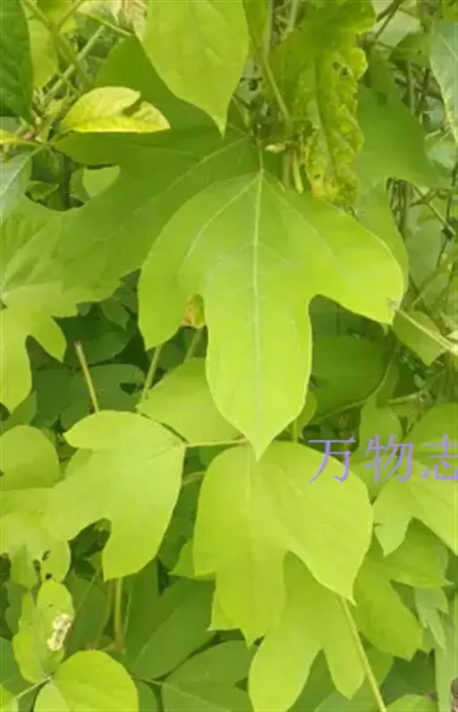三裂叶野葛(学名:Neustanthus phaseoloides) 性状特征 草质藤本。茎纤细,被黄褐色开展长硬毛。羽状复叶具3小叶,托叶基着,卵状披针形,小叶宽卵形、菱形或卵状菱形,全缘或3裂,上面绿色,被紧贴长硬毛,下面灰绿色,密被白色长硬毛。总状花序单生,中部以上有花,苞片被长硬毛,花具短梗,萼钟状,被紧贴长硬毛,下部裂齿与萼管等长,顶端刚毛状。花冠浅蓝色或淡紫色。子房线形。荚果近圆柱形,种子长椭圆形。