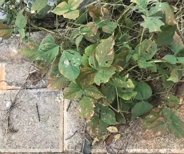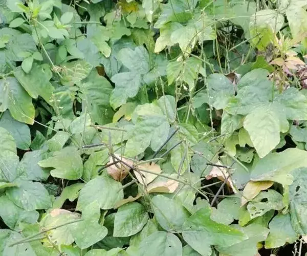 草质藤本。茎纤细,长2-4米,被褐黄色、开展的长硬毛。羽状复叶具3小叶;托叶基着,卵状披针形,长3-5毫米;小托叶线形,长 2-3毫米;小叶宽卵形、菱形或卵状菱形,顶生小叶较宽,长6-10厘米,宽4.5-9厘米,侧生的较小,偏斜,全缘或3裂,上面绿色,被紧贴的长硬毛,下面灰绿色,密被白色长硬毛。