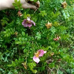 硕苞蔷薇是蔷薇科蔷薇属的常绿灌木。茎蔓生或匍匐状,被绒毛,并具粗壮的钩状皮刺;单数羽状复叶,…