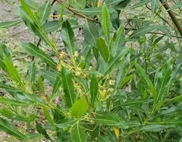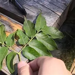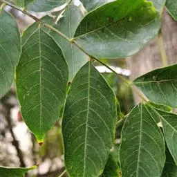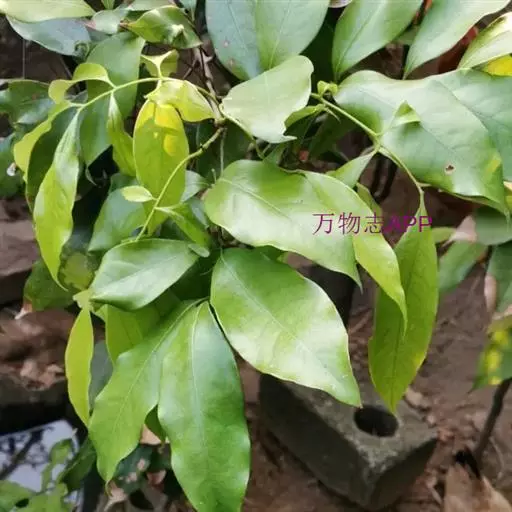 叶连柄长10-25厘米或过之;小叶2或3对,较少4对,薄革质或革质,披针形或卵状披针形,有时长椭圆状披针形,长6-15厘米,宽2-4厘米,顶端骤尖或尾状短渐尖,全缘,腹面深绿色,有光泽,背面粉绿色,两面无毛;侧脉常纤细,在腹面不很明显,在背面明显或稍凸起;小叶柄长7-8毫米。