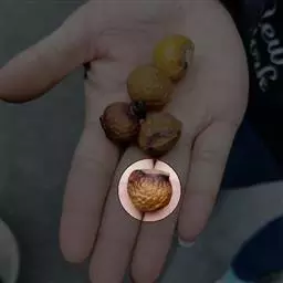 荔枝霜疫霉病,属真菌病害,主要危害果实,也为害花穗和嫩叶,病部呈水渍状,褐色,上生白霉状病原菌,致使果实腐烂脱落,花果腐烂或干枯。连续数天下雨,天气湿度高,气温22-25℃,通风透光差的果园发病迅速,特别是在果子着色后,发病更重。