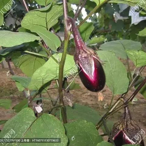 ⑶剪枝:茄子是双杈分枝作物,一般双干整枝,即对茄以上留两个枝条,每枝留一个茄,每层留两个茄。每级发出的侧枝在茄子长到一半大时留2-3片叶摘心。