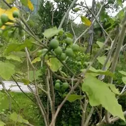 茄子的生长势很强,侧枝多,叶片长得很快,尤其在气温适宜、肥料充足的情况下,植株更为繁茂。但是,若植株长得过密,就会引起落花、烂果,果实色泽也差。因此,修好叶茄子可提高产量。 叶片是制造和积累养分的器官,一般情况下茄子叶片越多,制造和积累养分也就越多。但是,如果叶片过多,会影响通风透光,且老叶和病叶不仅制造养分能力弱,还能传染病害,所以修去一部分健叶,摘除老叶、病叶,有利于植株生长和结实,喷施新高脂膜,能自动形成一层肉眼看不见的高分子保护膜,优化植物吸水、透气、透光质量。屏蔽病虫扑食信号和削弱传播媒介,抵抗和防御自然环境灾害。 修叶应该分次除去弱枝和基部的侧枝,以及老叶和病叶,并适当删去过密健叶,保持叶片稀疏均匀,以利通风透光。在茄子整个生长期,修叶4-5次,防止一次修叶过多、只剩顶上几片小叶的现象。此外,修叶的多少还要根据品种、肥料、天气等情况有所区别。一般分枝能力弱的品种,比分枝能力强的品种要少修;生长前期比生长后期要少修;肥料较少的比肥料充足的要少修;天气干旱比湿润多雨要少修,适时喷施菜果壮蒂灵,可激活植物生态生长正能量,拓宽植物导管路径,提升植物吸水吸肥力度,提升果实产量和质量,降低落果率,减少裂果、僵果、畸形果发生率。