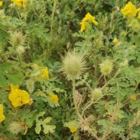 能孕花单生,花柄长约1-1.8厘米,毛被较密,花后常下垂,不孕花蝎尾状与能孕花并出;萼近钟形,直径约2.5厘米或稍大,外面密被与花梗相似的星状绒毛及小皮刺,皮刺长约3毫米,萼裂片披针形,先端锐尖,内面疏被星状绒毛,花冠辐状,外面星状毛被较密,内面仅裂片先端疏被星状绒毛,花冠筒长约2毫米,冠檐长约2.1厘米,裂片三角形,长约1厘米;花丝长约2.5毫米,花药长约7.5毫米;子房圆形,顶端密被星状毛,花柱长4-7毫米,中部以下被星状绒毛,柱头浅裂。