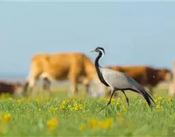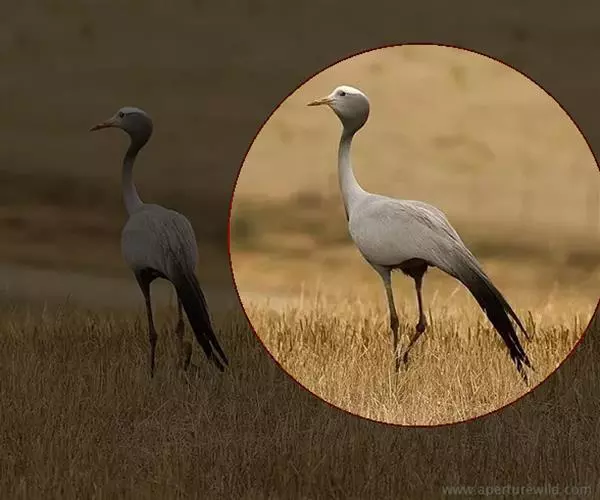 蓑羽鹤大型涉禽,体长68~92厘米,是鹤类中个体最小者。通体蓝灰色,眼先、头侧、喉和前颈黑色,…