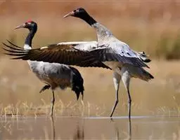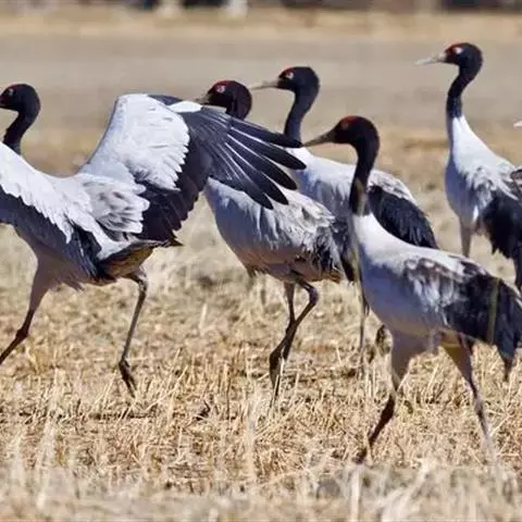 黑颈鹤:是鹤科、鹤属的大型涉禽,体长110-120厘米,体重4-6千克。颈、脚甚长,通体羽毛灰白色,…