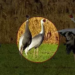 赤颈鹤(Sarus Crane)是大型涉禽,共分化为3个亚种。后趾小而高位,不能与前三趾对握,因此不能栖息在树上;全身羽毛大致呈浅灰色,成鸟颈部裸露红色的皮肤。初级飞羽和初级覆羽为黑色,白色而修长的内侧飞羽垂直的覆盖着尾部。嘴灰绿而脚粉红。栖息于多草的平原、水田、沼泽湿地及森林边缘。以稻谷及水生植物的根、块茎为食,也取食鱼类和蛙类。7-12月份繁殖,筑巢于沼泽地带成团的植物丛中,以水生植物茎、叶筑成。每窝产卵2枚,绿色或粉红白色,具褐色和紫色斑点。雌鸟孵卵,雄鸟守卫,孵卵期30天,由双亲共同照料幼雏。分布于印度、缅甸、泰国、马来西亚、澳大利亚和中国的云南盈江和西双版纳等地。