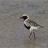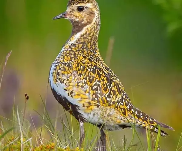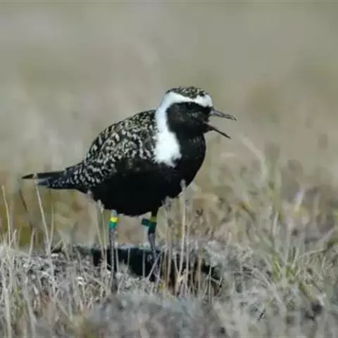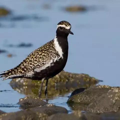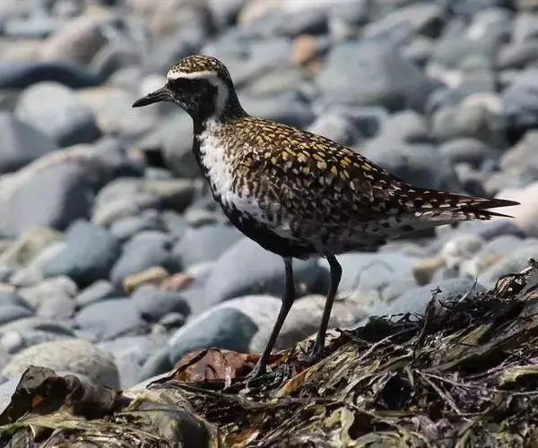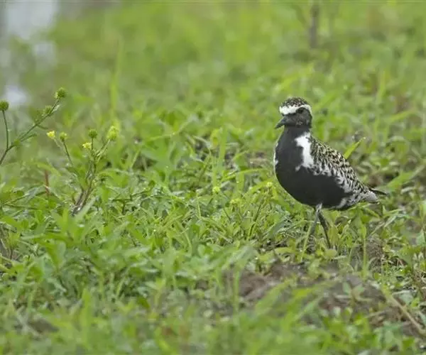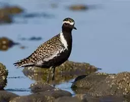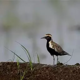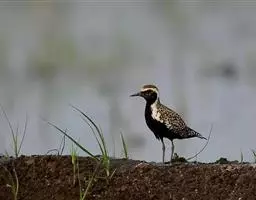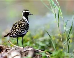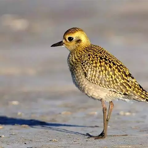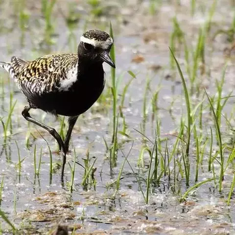 金鸻(学名:Pluvialis fulva):属中型涉禽。体重98-140克,体长230-252毫米。夏季全身羽毛大都呈黑色,背上有金黄色斑纹。翅膀又尖又长,飞行能力很强,秋天迁徒飞到很远的地方去越冬。跗蹠修长,胫下部亦裸出。中趾最长,趾间具蹼或不具蹼,后趾形小或退化。翅形尖长,第1枚初级飞羽退化,形狭窄,甚短小;第2枚初级飞羽较第3枚长或者等长。三级飞羽特长。尾形短圆,尾羽12枚。