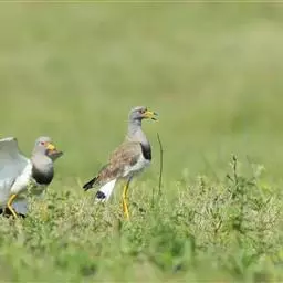 灰头麦鸡是鸻形目鸻科麦鸡属鸟类,繁殖期头、颈及胸灰色;胸部和腹部之间有黑色胸带分隔;背部及两翼大部分覆羽褐色;腹部和腰部白色;尾羽基部及边缘白色,近末端有黑色斑块。非繁殖期头颈部染褐色,颏及喉部白色,胸带不明显。初级飞羽黑色,其余飞羽及与之相邻的部分覆羽白色;虹膜红褐色,眼圈黄色;嘴尖段黑色,后段黄色;腿和脚黄色。灰头麦鸡分布于欧亚大陆及非洲北部、中南半岛以及太平洋诸岛屿,在中国分布于东南沿海地区。栖息于丘陵、平原地区河流、湖泊和沼泽等水体附近。繁殖期成对活动,其余时间集群活动。主要啄食甲虫、蝗虫、蚱蜢等昆虫,也吃水蛭、螺、蚯蚓、软体动物和植物叶片及种子。繁殖期为5—7月,1年繁殖1窝,每窝产卵4枚。灰头麦鸡被列入中国国家林业局发布的《国家保护的有益的或者有重要经济、科学研究价值的陆生野生动物名录》。
