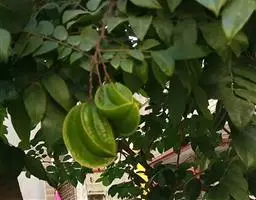 结果树修剪:阳桃修剪尽量保留中下部枝条,内腔枝修剪保留2厘米的枝桩。一般10年生以下的结果树,剪除基部结过果的细弱小枝,疏除树冠顶部过密枝条,对过长枝条短截。10-15年生树疏除顶部大量的徒长枝,抑制徒长形成开心。阳桃修剪短截后留下的枝桩也能开花结果,因此在修剪内部萌生枝时一般不从基部剪除,而留2厘米的枝桩。每年修剪3次。第1次(2-3月份),采果后老叶枯落期,短截或剪除枯枝、徒长枝、过密枝、弱枝、老化枝。第2次(5-6月份),在花蕾抽出前40天左右,剪除生长过旺枝、过密纤弱枝,并结合疏果。第3次(9-10月份),方法同第2次,结合疏果。