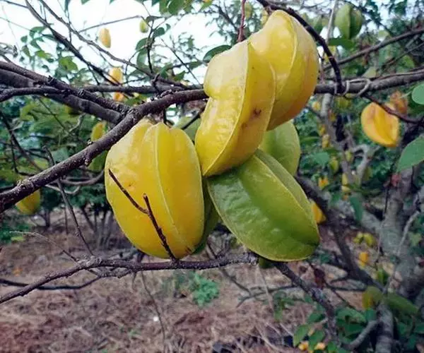 幼树整形修剪:定植成活后,在60-80厘米处短截,并剪除主干基部的萌蘖。在萌发的新梢中选留4-6条作主枝。阳桃枝细、韧,可用竹杆支撑,用细绳拉吊使主枝、副主枝均匀分布,培养层状排列的树冠。主枝上抽出副主枝,应从小培养向下弯垂。幼树尽量保留枝梢,仅短截过长营养枝,树高控制在3米以下。
